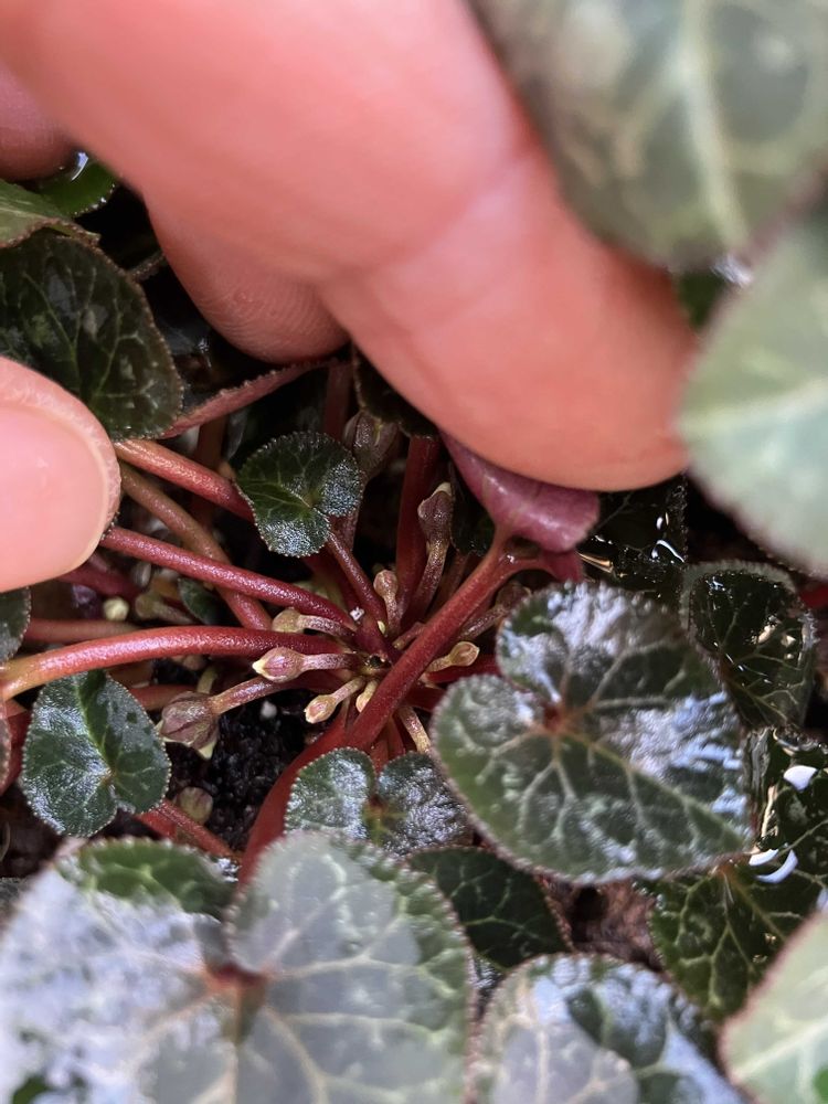 球根を掘り上げ夏越ししたガーデンシクラメン。