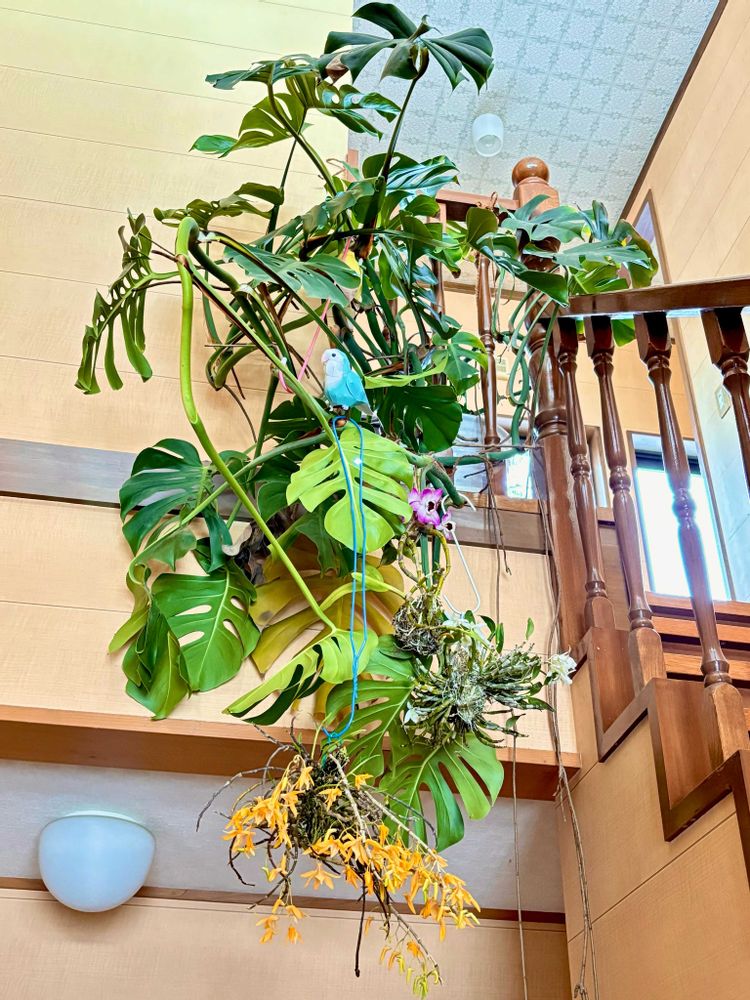 モンステラの気根に着生蘭を下げてます。🌸🌿🤷♀️