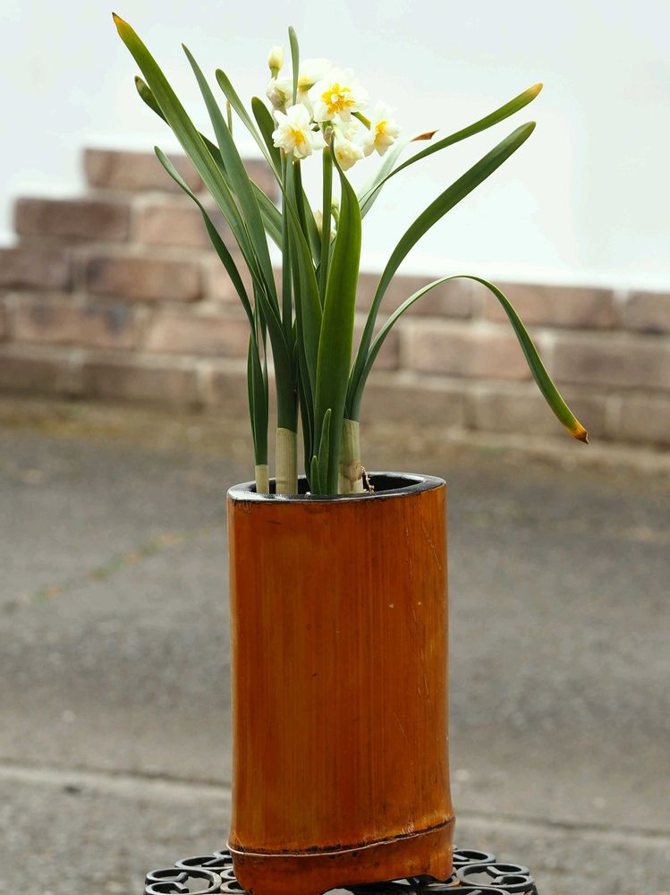 短歌、流行ってますでしょ。竹の鉢と水仙めちゃ似合っています✨✨✨