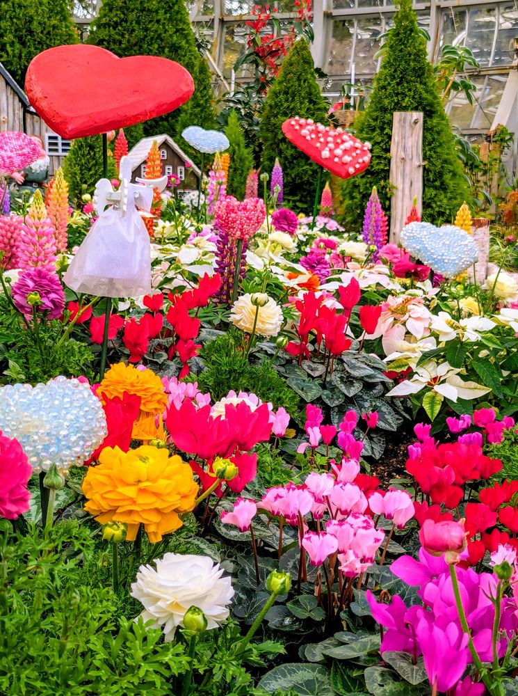 いつものグリーンセンターの展示温室はバレンタイン仕様になっていました💕
