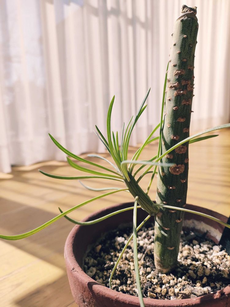 前回(2024.11pic)から伸びていました😆切った部分よりだいぶ下で脇芽が出たので今後の姿が想像できないけれど、何年も棒しか拝めなかったから変化が見られるのは嬉しい😊