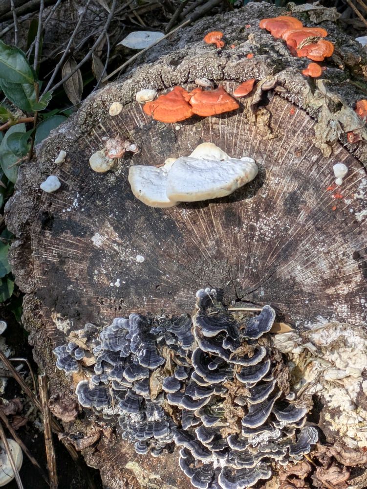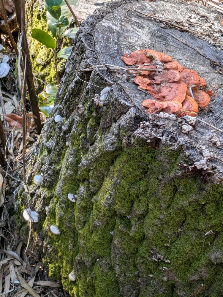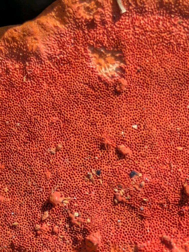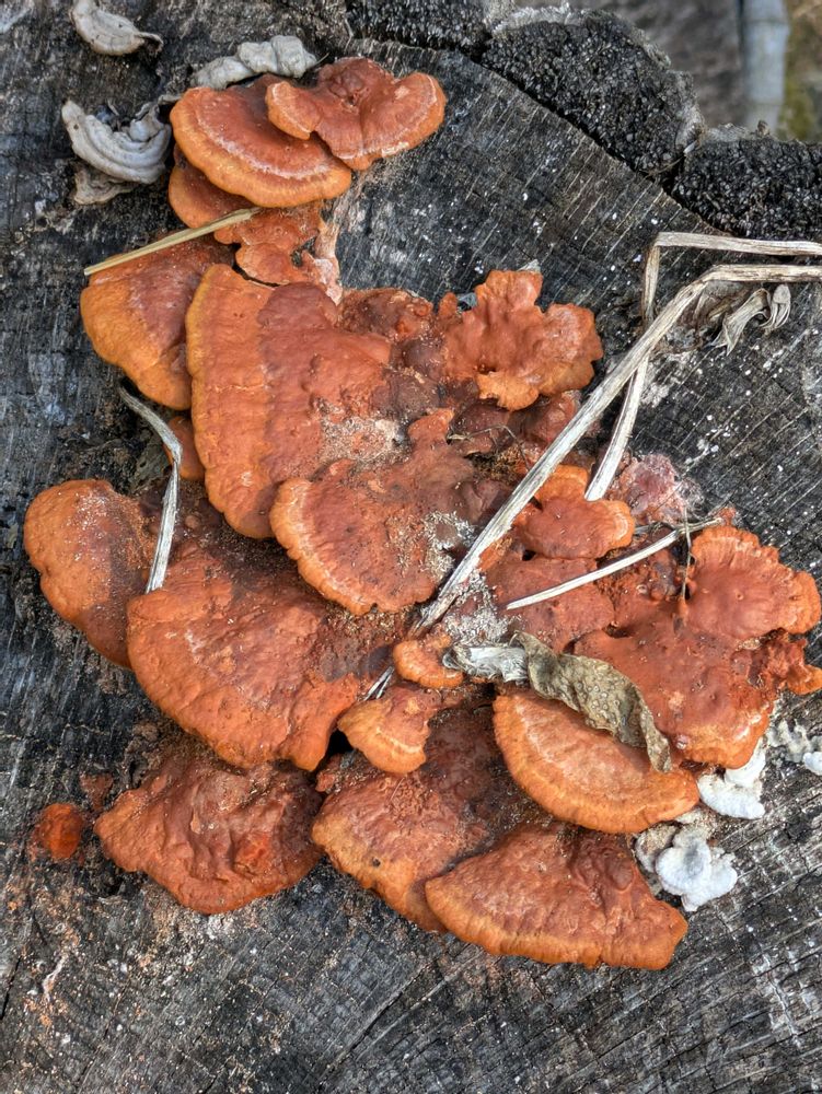 ヒイロタケは緋色でとても目立ちます 裏のほうがもっと鮮やかです