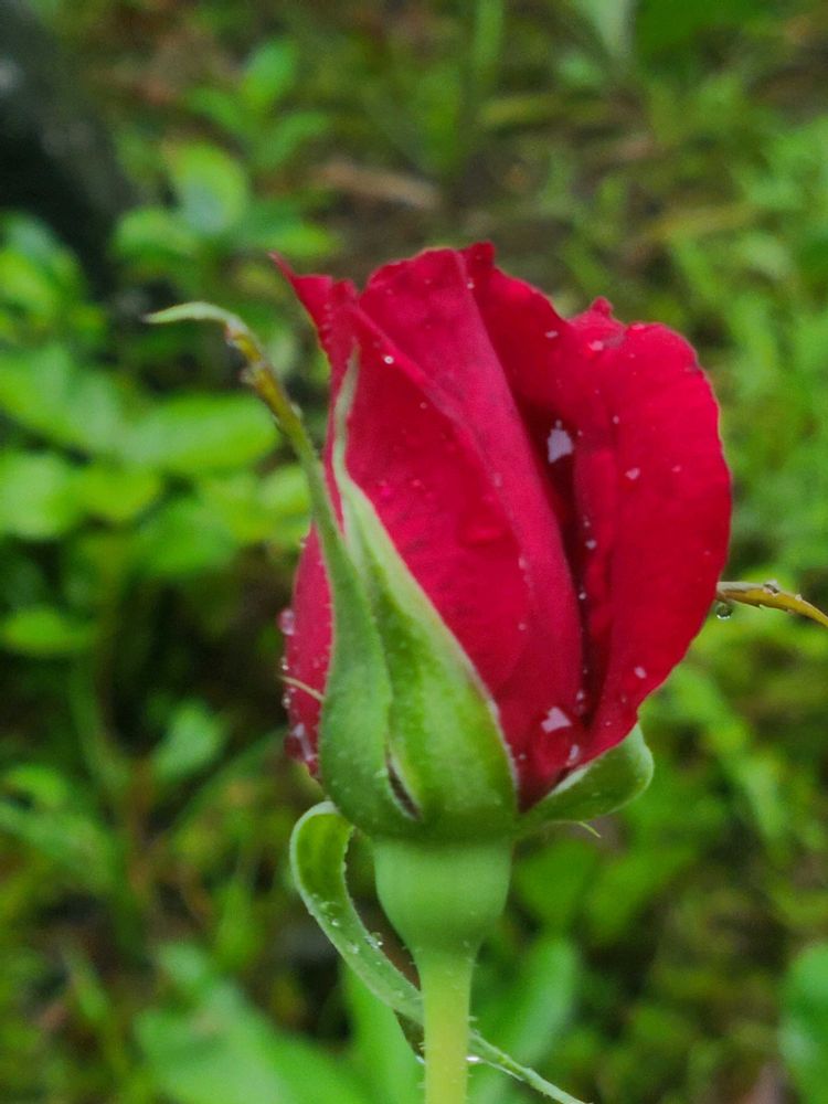 我が家の真っ赤なバラ🌹名前は分かりませんが放ったらかしなのに毎年咲いてくれます😊