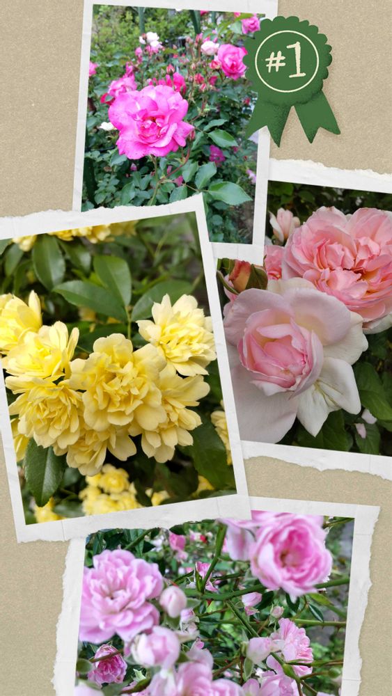 ①は、実家の🌹と黄色は唯一庭のモッコウバラです。