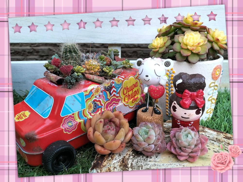 この前寄せ植えしたチュッパチャプスカーとハートハピコロちゃんとイガベリーさんのバレンタインちゃんと一緒に📸✨✨✨
