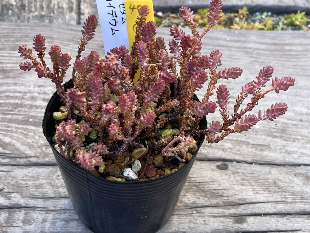 こういう赤っぽい紫色に紅葉するセダムはあんまりないので、寄せ植えに入れるとわりと映えます。