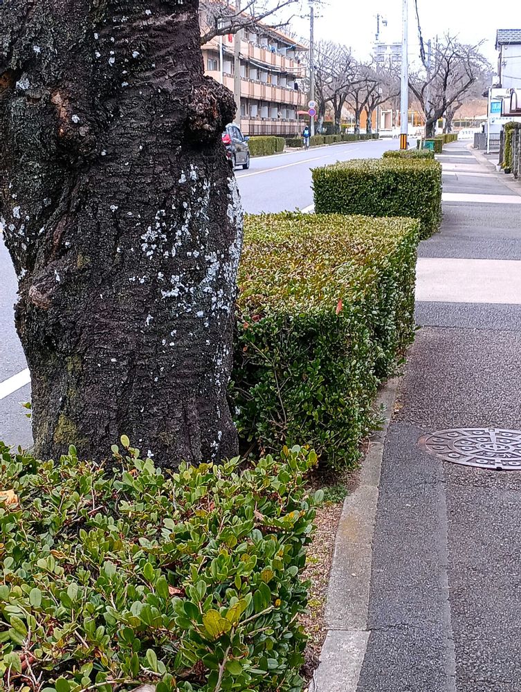 中央分離帯のハマヒサカキ、引っこ抜かれたのは、そのせいかもしれませんね🤣😅💦