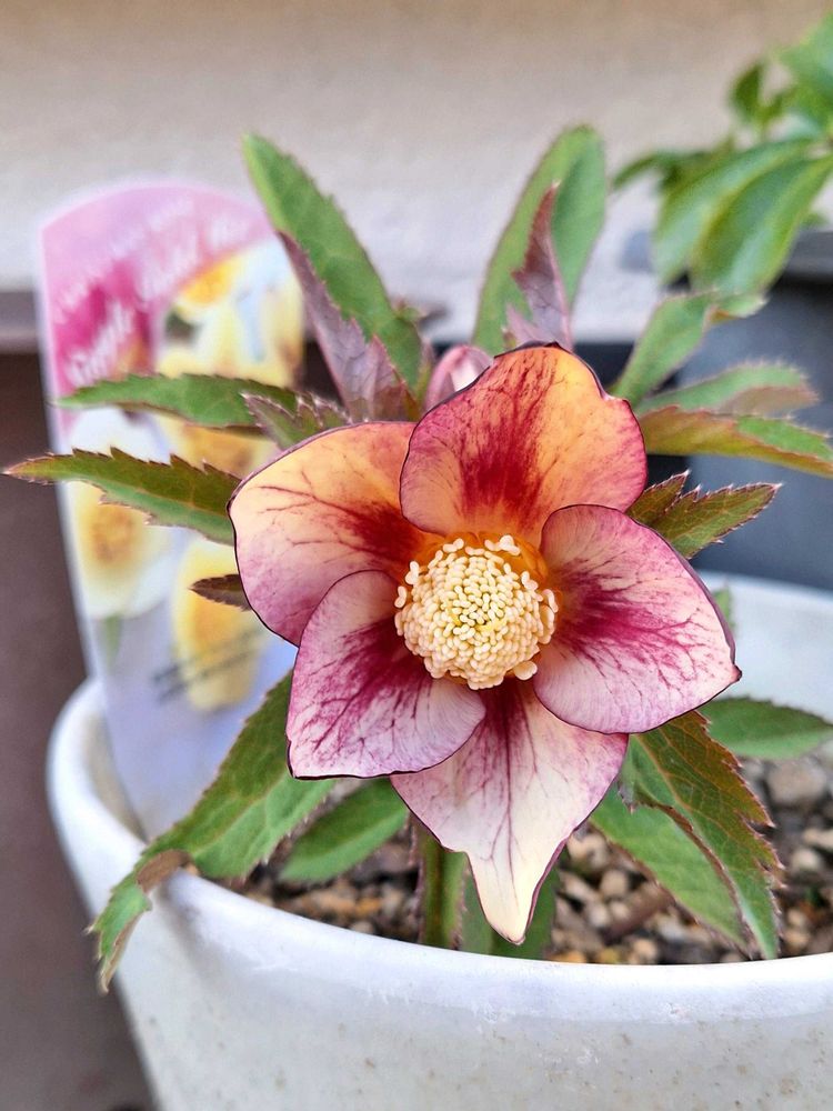先日蕾の状態でご紹介しましたが、名札に「シングル ゴールド ミックス」と書いてあるクリスマスローズが咲きました🎵🙌