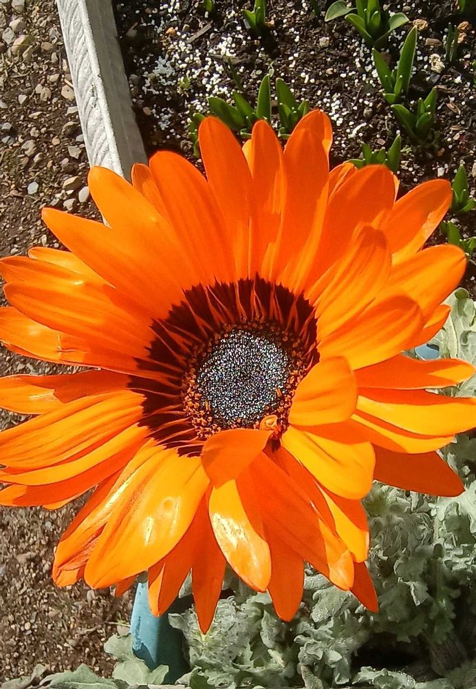 太陽のようなオレンジの花とシルバーの葉が素敵なお花ですね🧡✨