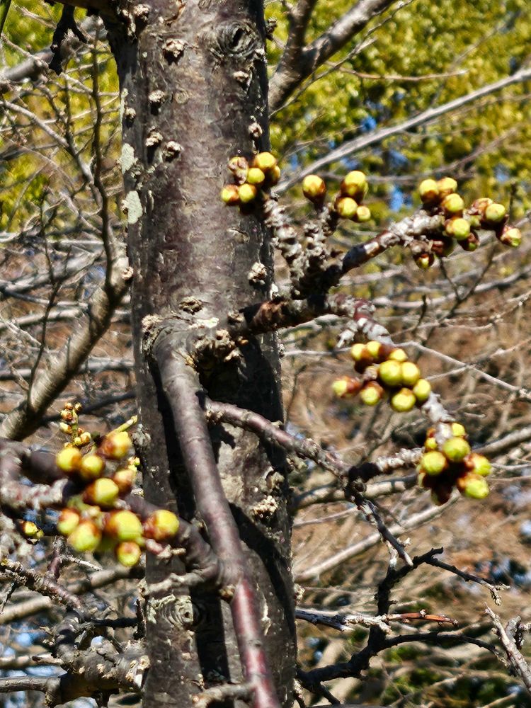 庭の紅梅はまだまだ硬いつぼみです😓🌸👍👍