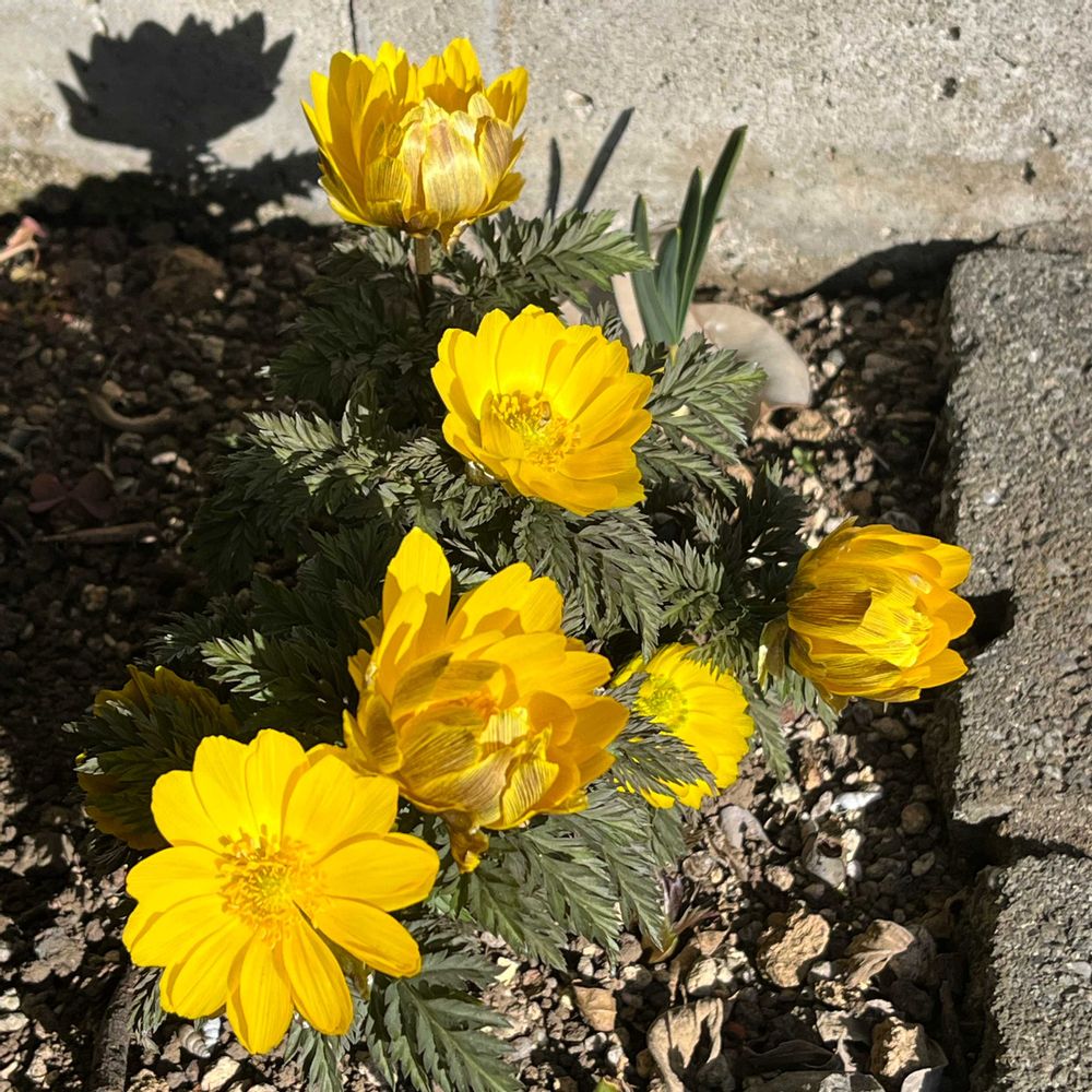 いつもの散歩道に咲いていましたフクジュソウです😆👍🌼🪻🌿 綺麗です🤩😍🌼✨ このお花は夕方から夜は閉じていますが昼間、太陽の光が当たると一斉に咲きます😆👍🌼 本当に綺麗なお花です😆✨🌼🌼 好きなお花😆👍✨🌼🌼