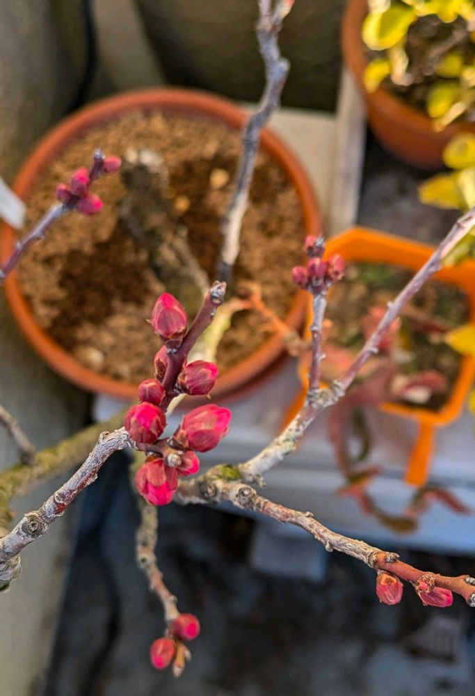 河津桜より今年は芽の動き出しが遅れていると思っていたんですが、ここにきて梅の武蔵野が追い越して蕾が色づきだしました。