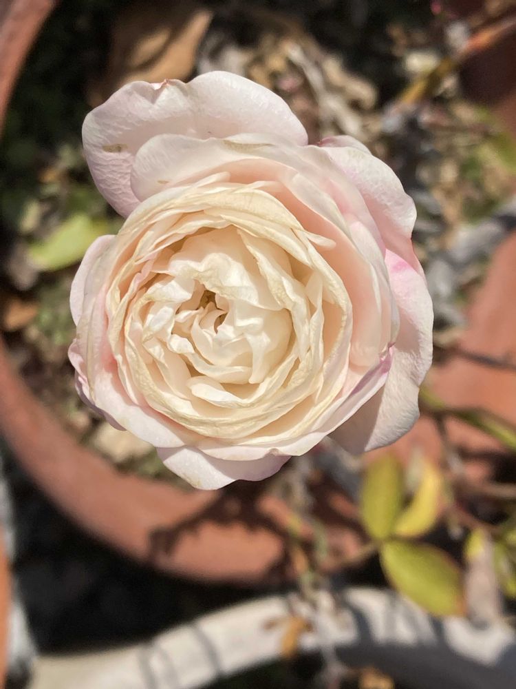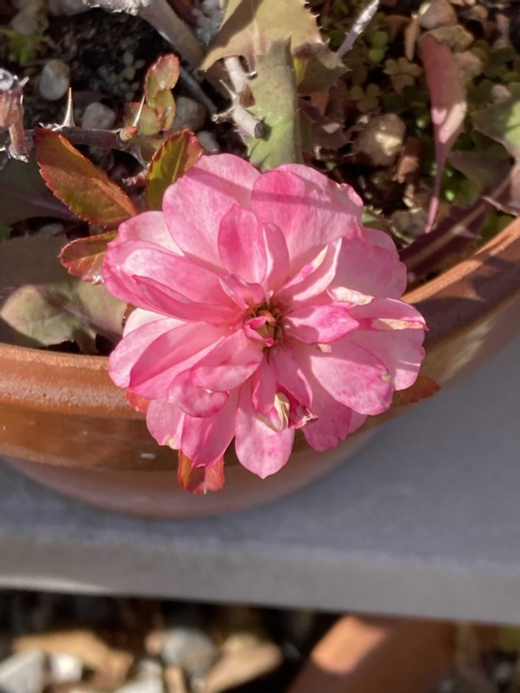 挿し木のバラ アイスバーグと名札が有るけど、寒いから色が変わったのかな?