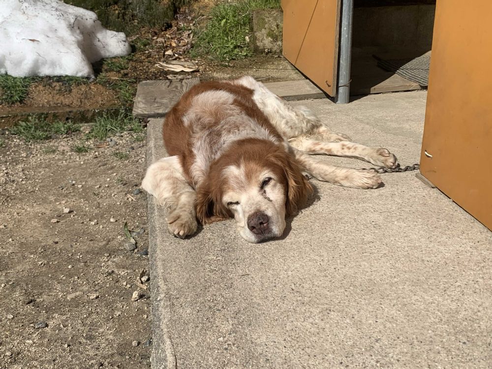 お山のパトロール😀カンジキ忘れてまともに歩けない🤣💦春蘭もまだまだ先ですね😅きのう動物病院でパチリ😀数値が悪くなってた😓お昼なので帰ると日向ぼっこ中のカールくん🐕