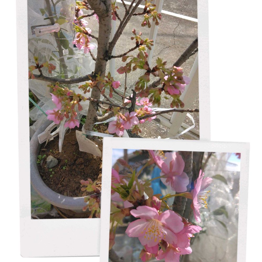 お庭で河津桜が🌸今日は少し暖かく春を感じます。