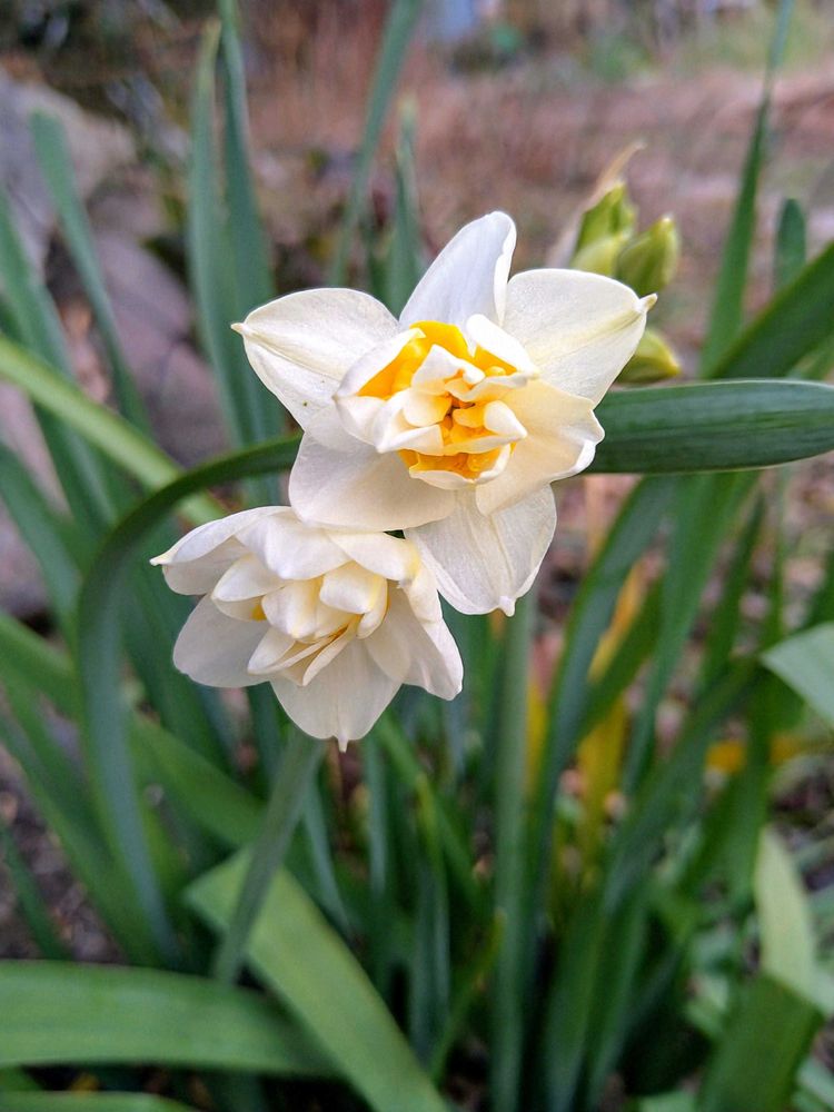 日本スイセンに続いて、八重房咲きスイセンが咲き始めました🤗