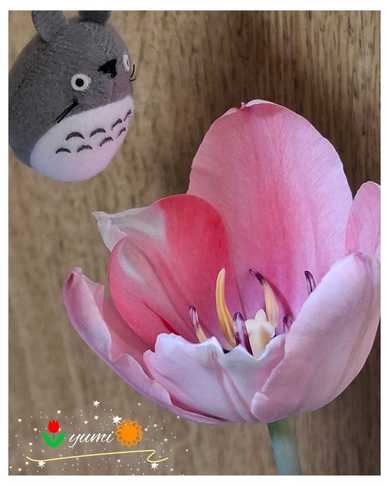 可愛いチューリップ🌷とトトロとのコラージュ素敵ですね🩷