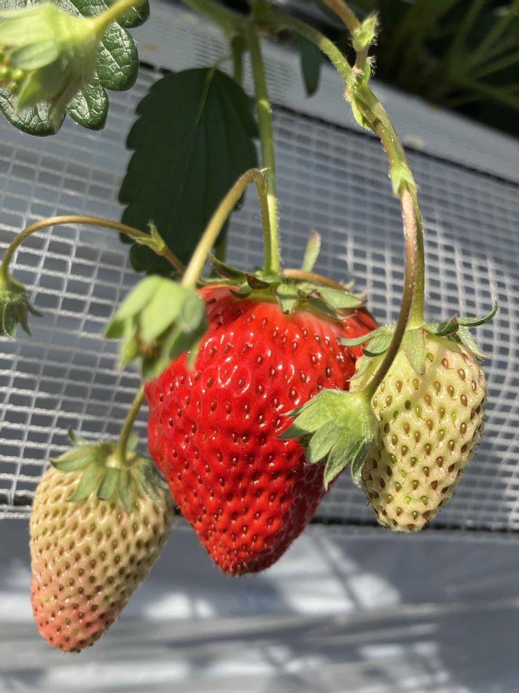 はい こちらではもうイチゴ狩りが始まってます。大粒で甘くて美味しい😋
