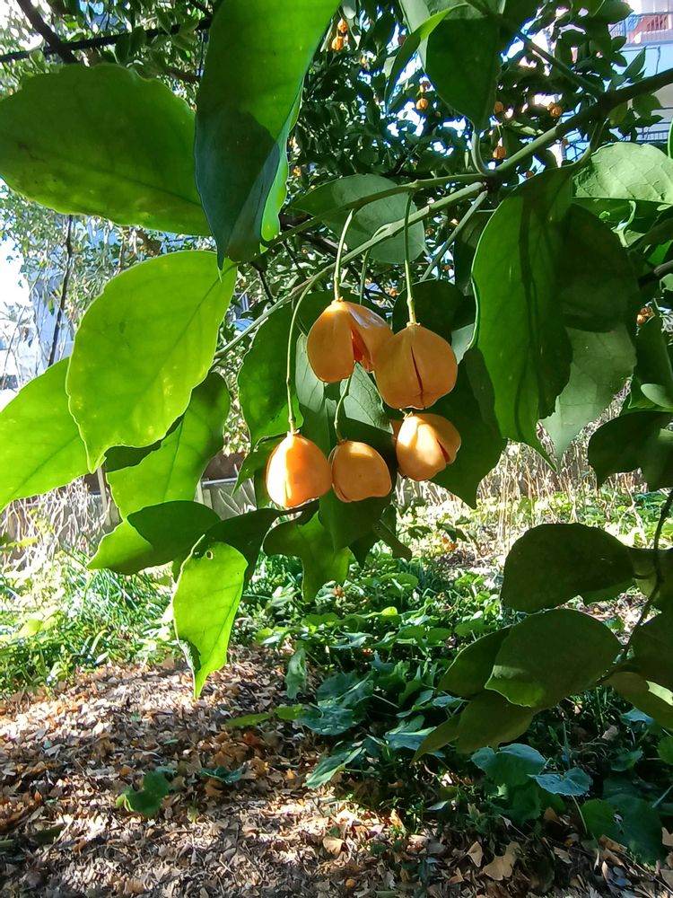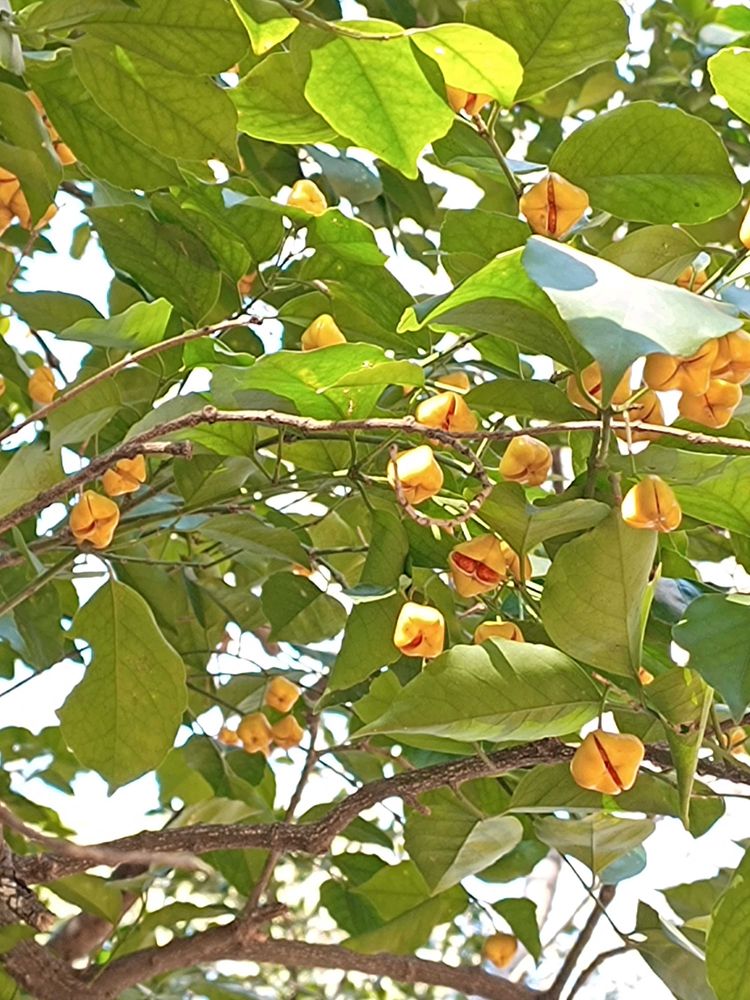 植物園入り口近くにあった黄色果実、調べたらヒゼンマユミでした。