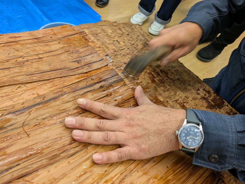 木の中の水分の動きが少ない時期に上手に剥ぎ取る〜熟練の為せる技✨伝統工芸は長年伝えられて来たのですね🤩