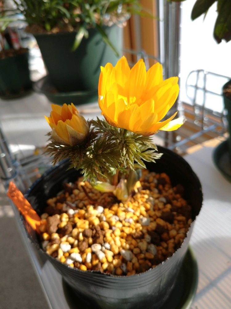 昨日、新津フラワーランドでお迎えした福寿草です。