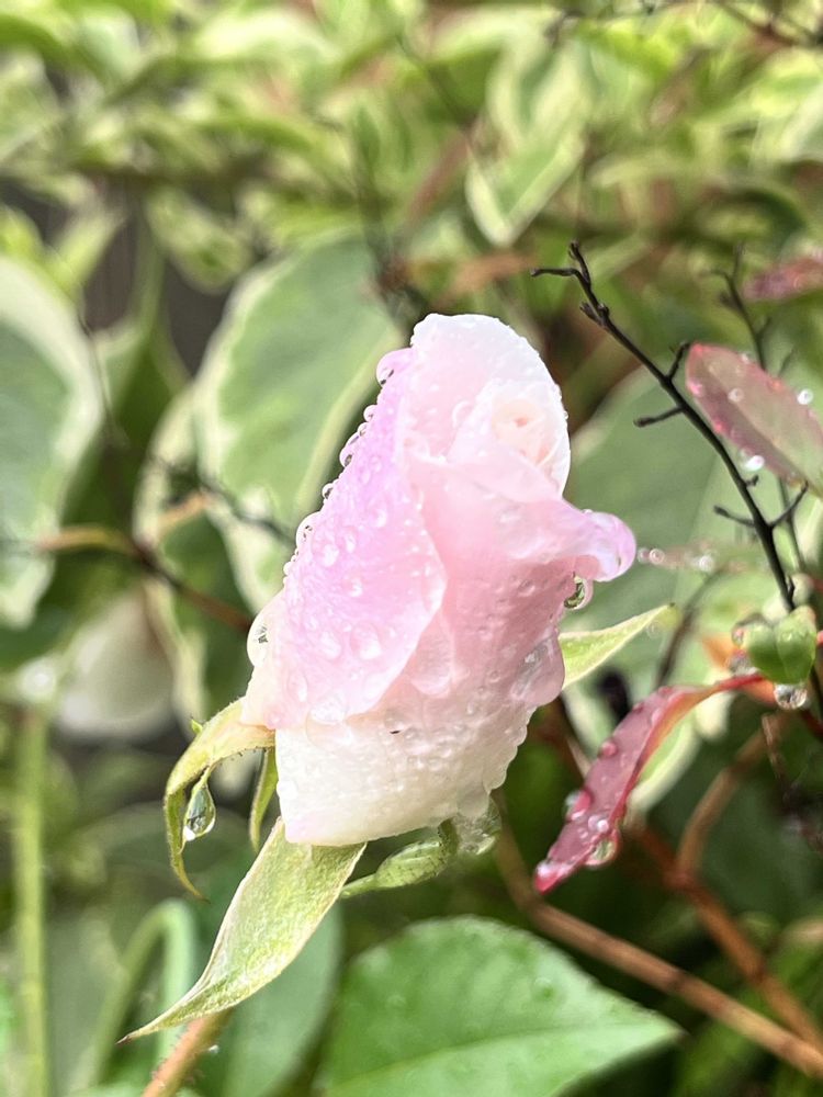 昨日の夜中からの雨に打たれて、お庭の花達がうなだれています😭