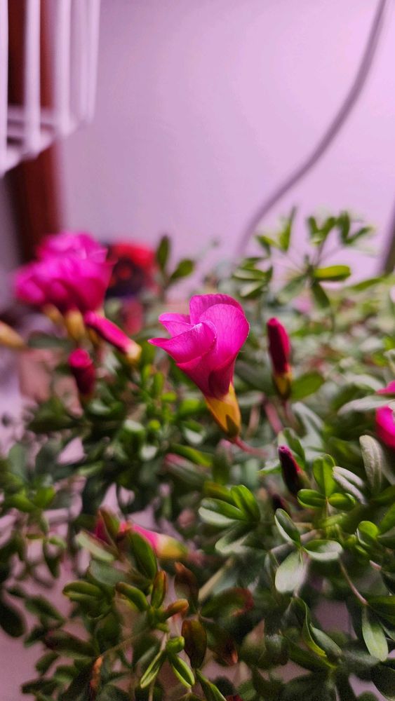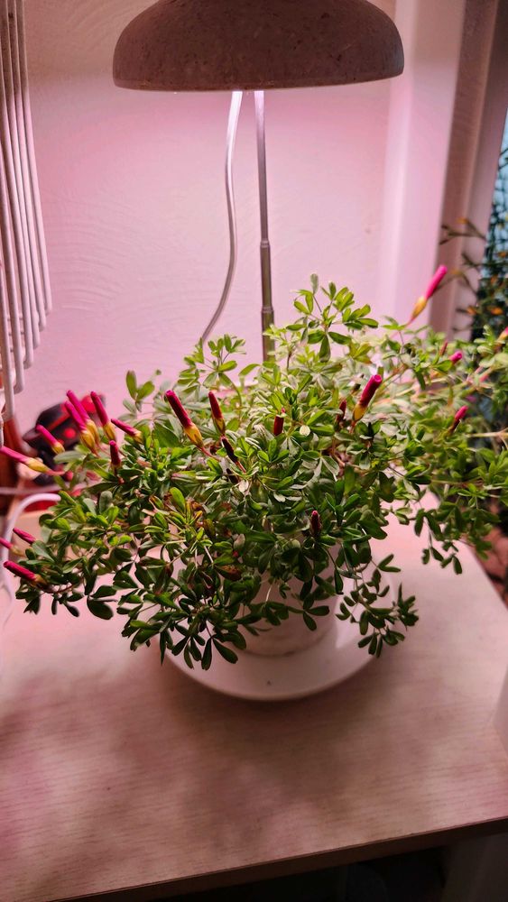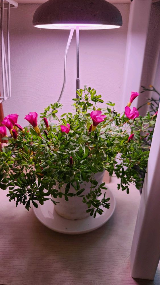 いつもはバルコニーに置いているオキザリスに育成ライトを当ててみました💡