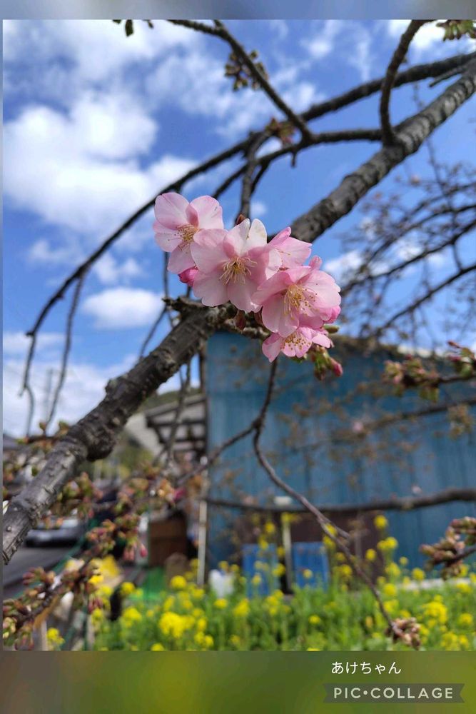 あけちゃんさんのお出かけ先,菜の花,河津桜の投稿画像