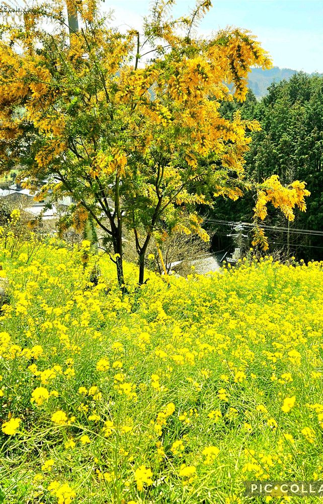 3枚目の写真の菜の花のところに一緒にある木は、ミモザでしょうか?