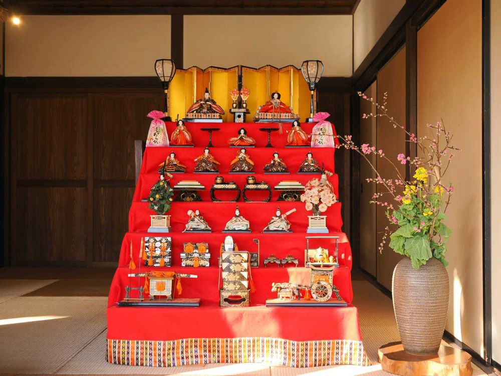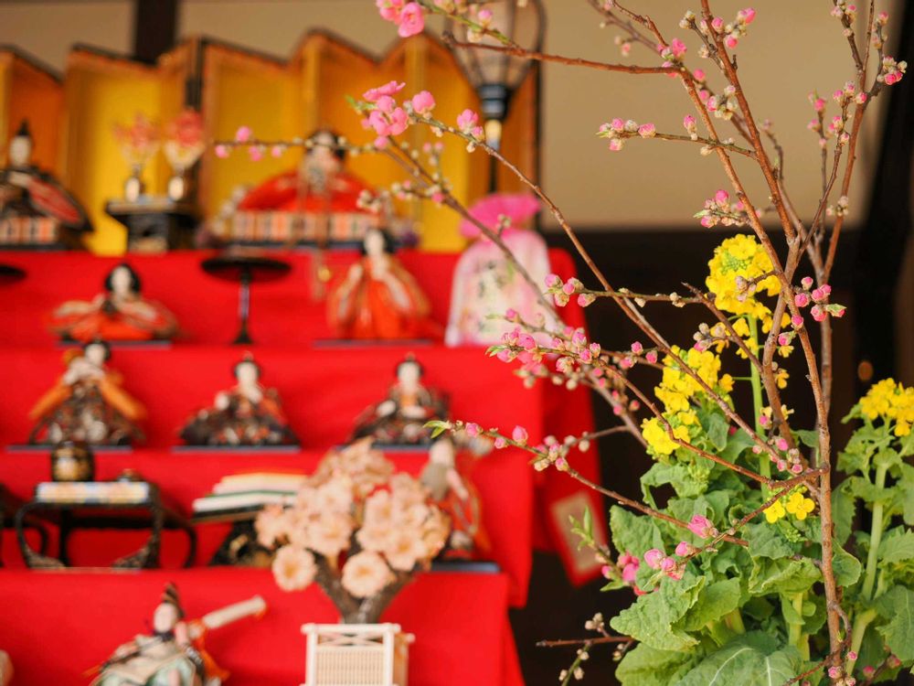 立派なお雛様に、桃の花と共に供えてありました🩷💛