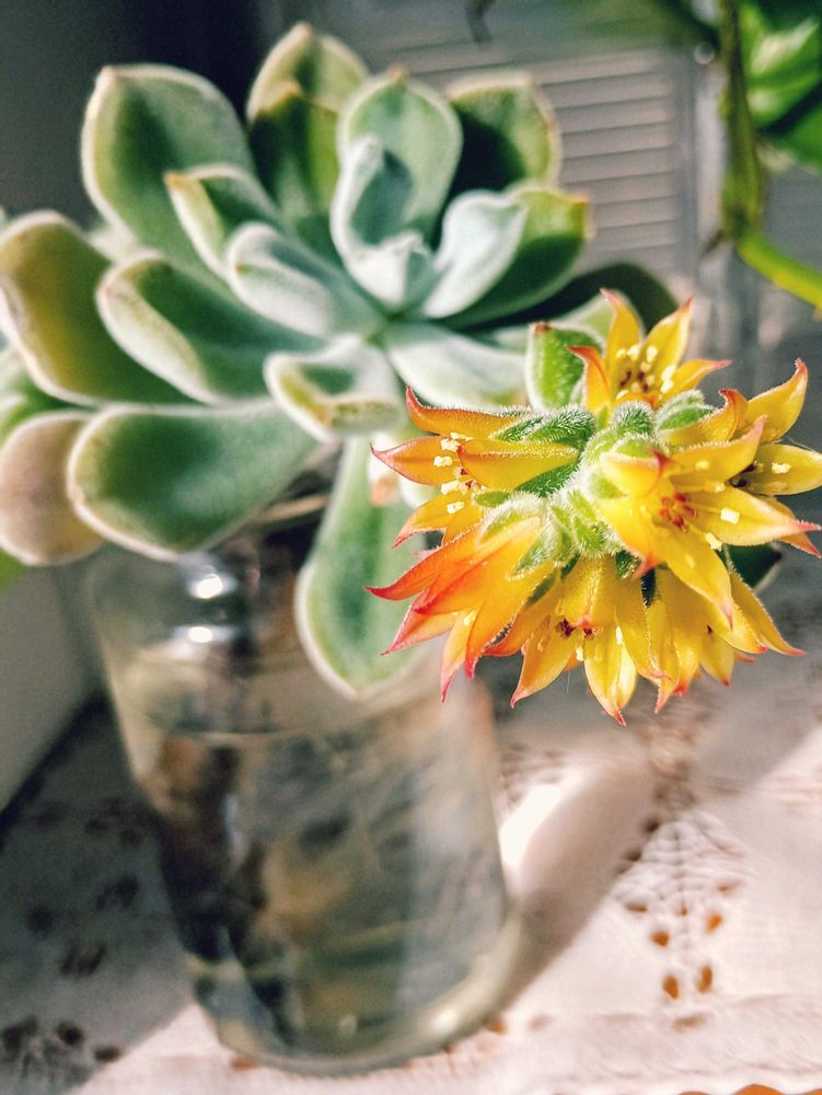 😲😳多肉さんを水に挿していて花が咲いたのですね😲😳