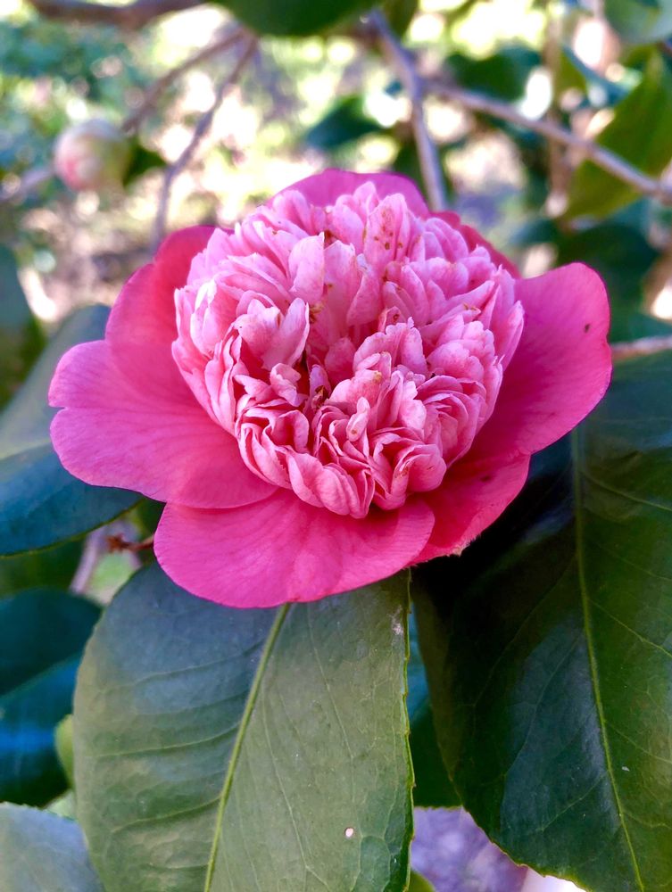 昨年の今頃2月18日に、ピンク色のサザンカ「桃割れ」をパチリ!📸🩷🌿😊😄👌