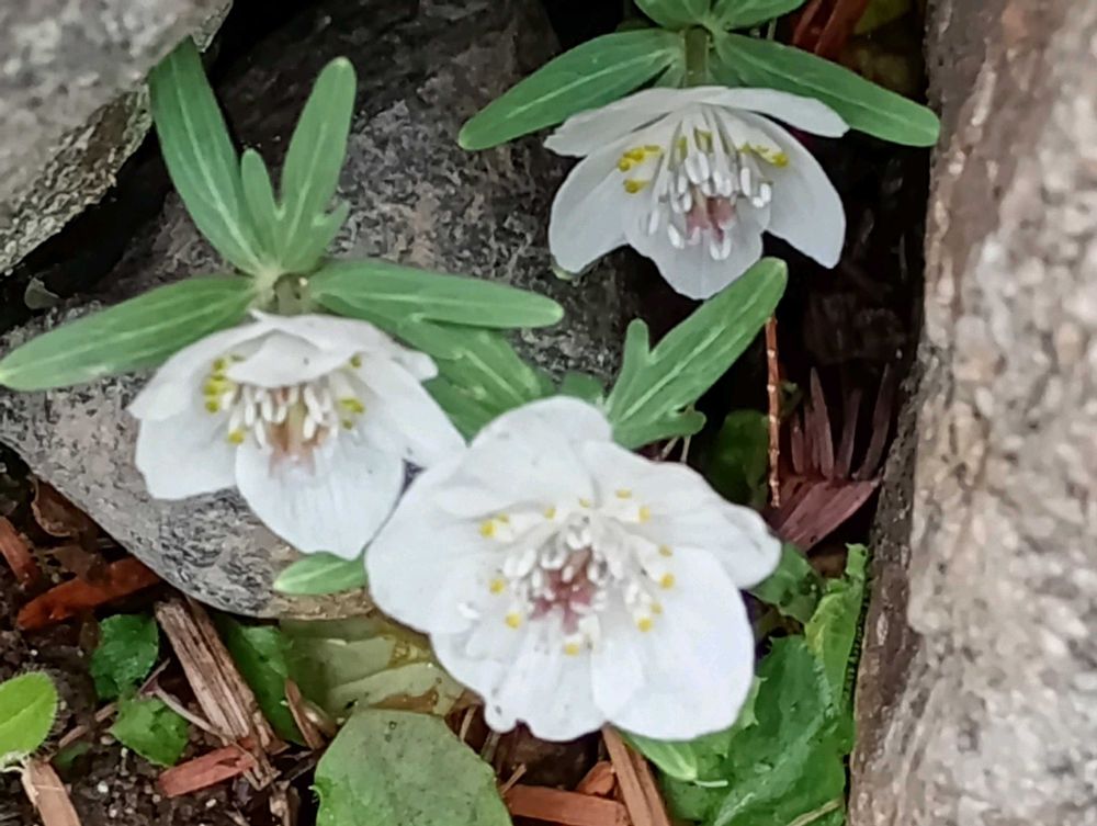 はなぶんのセツブンソウ、石の間の写真、たぶん私も小さいつぼみを見ていたのと同じかなと思います。