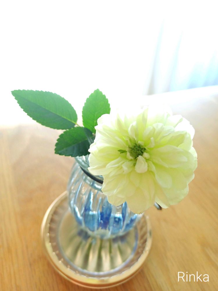 花器の硝子がほんのり青くて素敵ですね(ღˇᴗˇ)。o♡
