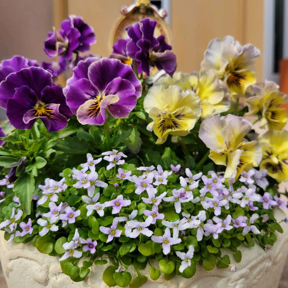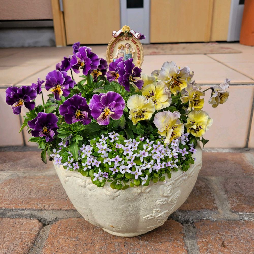 後方にチューリップも植えてます🌷ダブルデッカ-寄せ植え🌷
