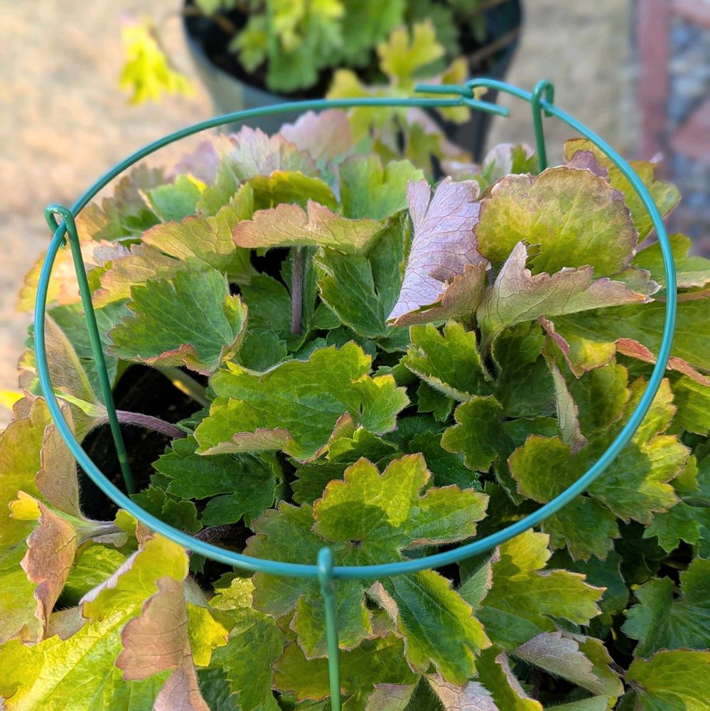芽吹いた時の葉っぱはビヨ〜ンと伸びてしまって、軒下で他の鉢に垂れてしまったので、今回初めて葉垂れ防止用のサークル支柱をはめてみました🪴