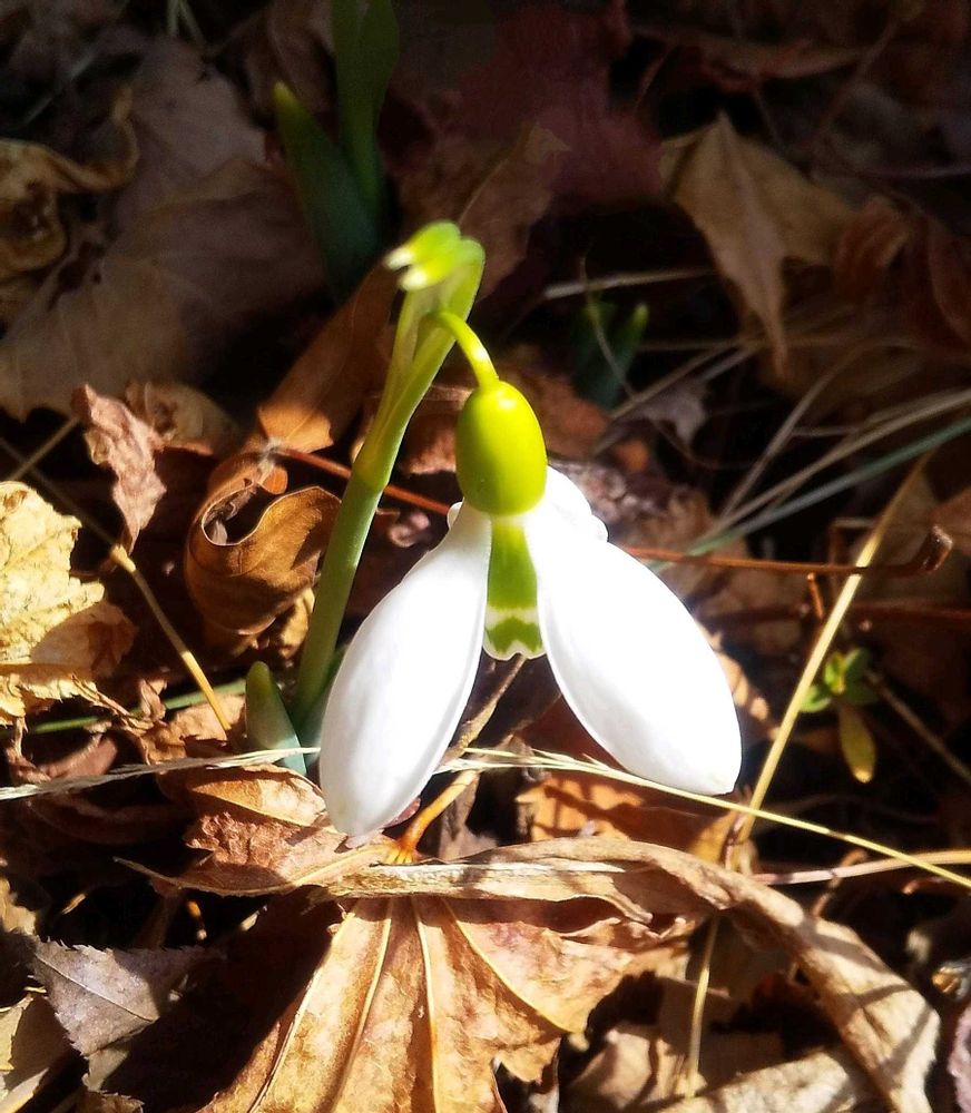 厚い落ち葉の中から春一番がお目覚め🌱🤍