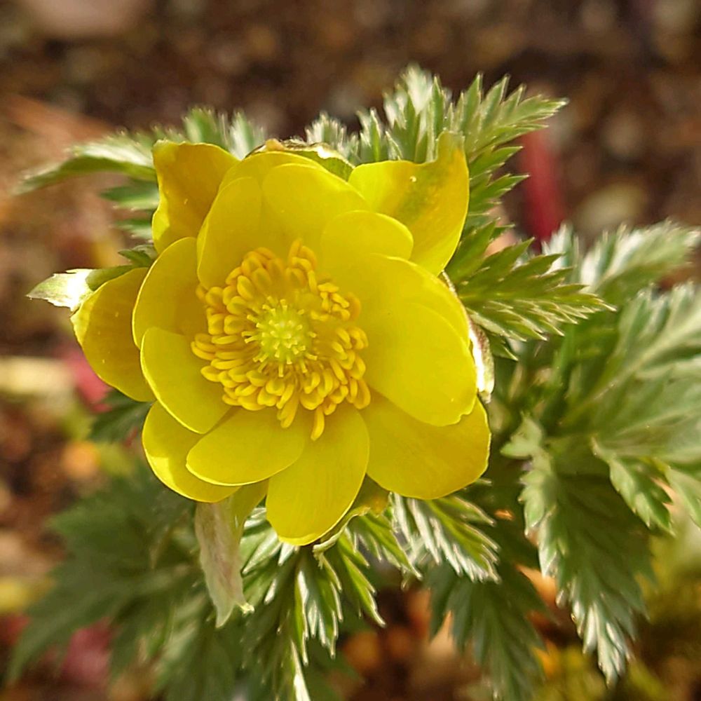 フクジュソウ〜お天気が良いのでキラキラと太陽の陽射し浴びながら咲いてました〜この調子だと、他の蕾も開きそうデス〜💛💛💛✨✨✨