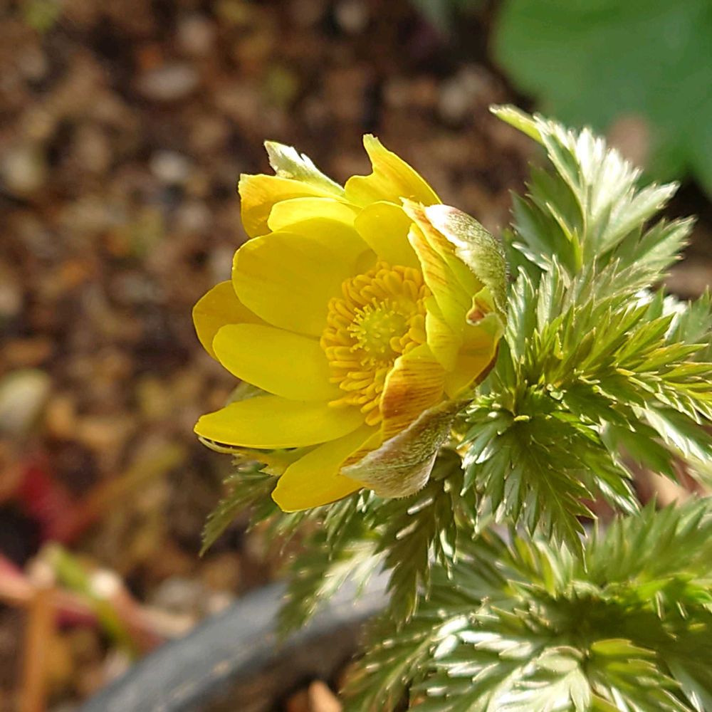 太陽いっぱい浴びてフクジュソウが咲始めました〜でも、夜になるとシッカリと花閉じてるので、、ビックリしました〜🤭💛✨