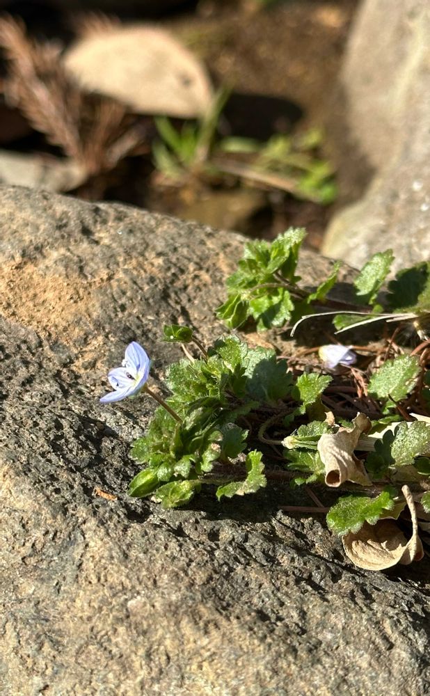 オオイヌノフグリ(何処でも出会ってしまう可愛いブルーのお花、ここのオオイヌさんは栄養満点のような葉っぱです)
