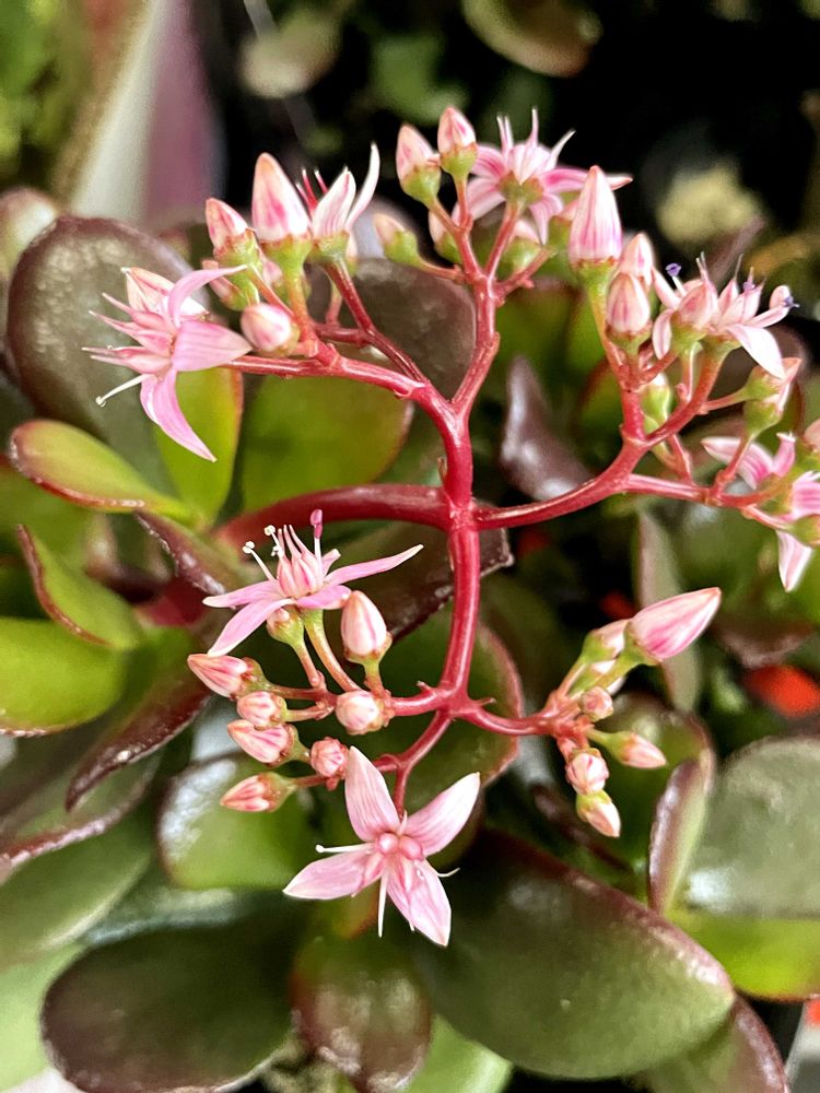 草丈は50cm~3mほど。大きく生長すると茎が太くなり木の幹のように見えるため、多肉植物ではなく観葉植物に分類されることもあります。耐暑性が強く、耐寒性もあるため、丈夫で育てやすい植物です。晩秋から冬にかけては、白や淡いピンクの可憐な花を楽しめます。