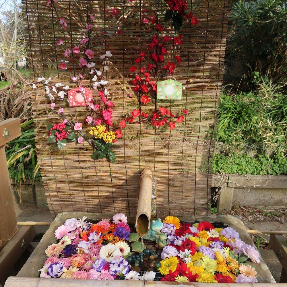 浦賀神社の手水舎はガーベラをメインに飾られていました。