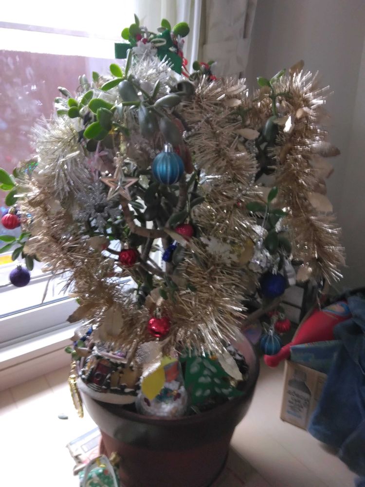 金のなる木、毎年クリスマスツリーに変身してもらいます。