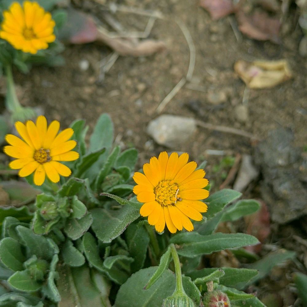 園内の冬知らず(カレンデュラ)は、何年か前に植えた時のこぼれ種から毎年花を咲かせています🌼*・