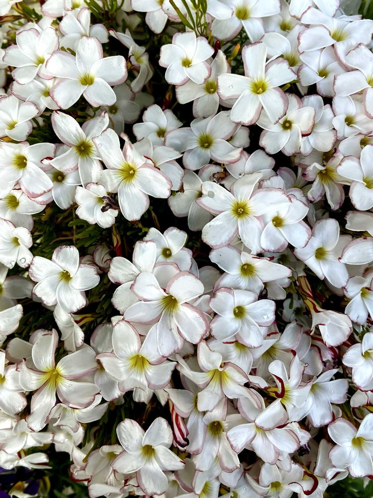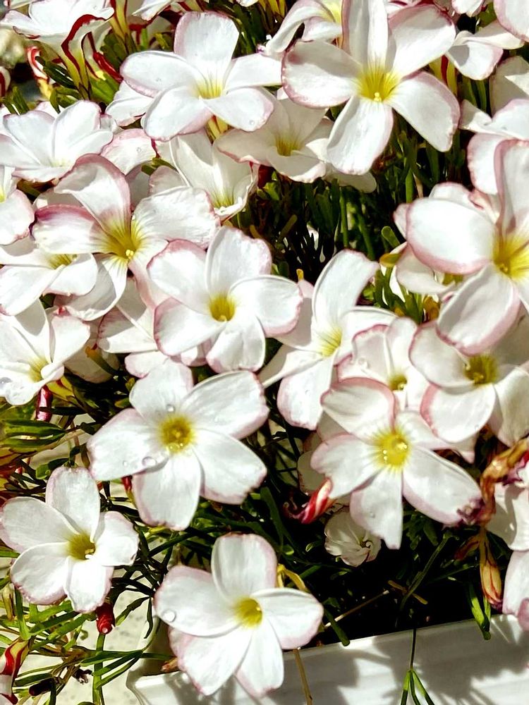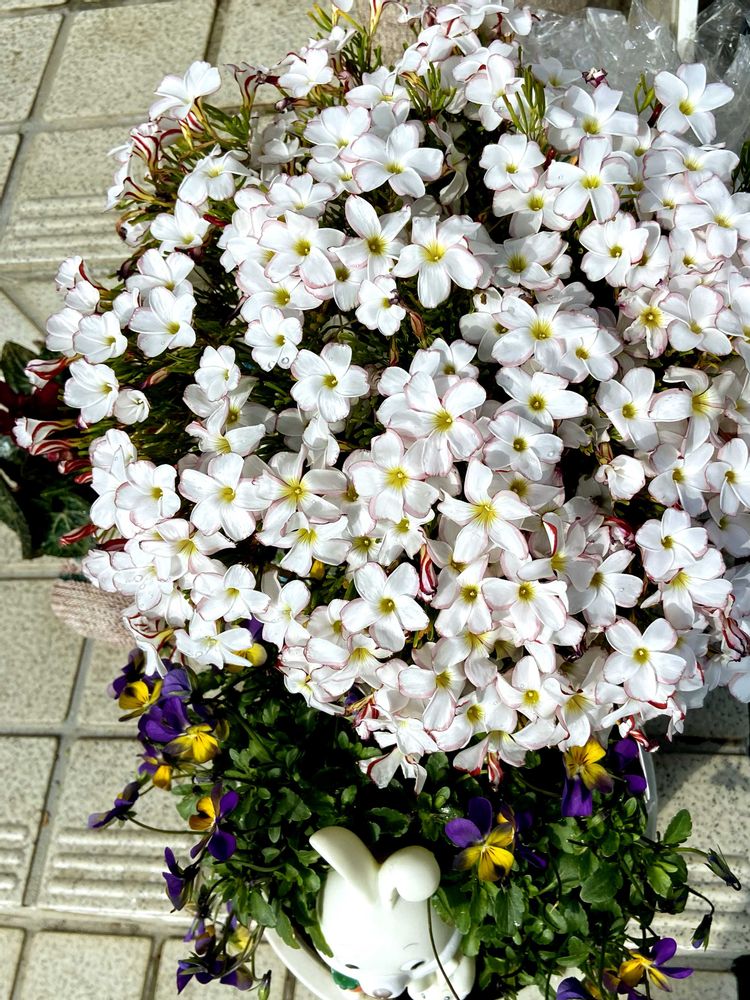 ①②③鉢植えのオキザリスのパーシーカラー🤍🤍🤍🤍🤍鉢から溢れんばかりに満開や〜🥰こんなの初めてやわ〜💕