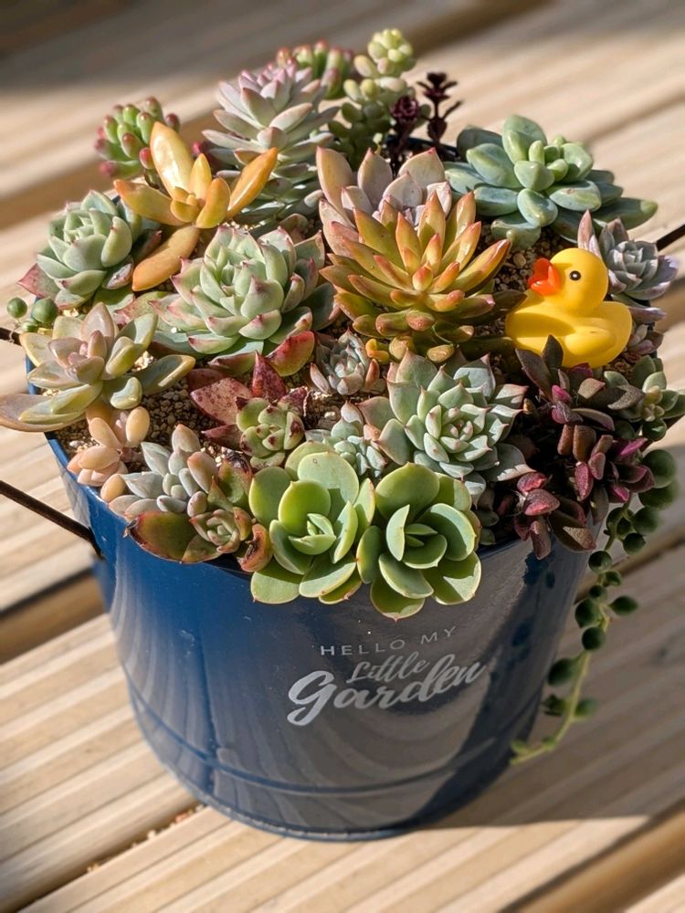 ①差し色が効いてる寄せ植え❣️黄色多肉は💛銘月💛サンライズマム💛ビタミンカラーのピヨちゃん🐤
