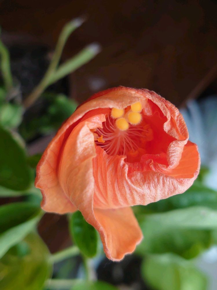 日の当たる日中はベランダに出して🌞日が陰るとお部屋に入れてを守っていたら🌺今朝咲いてくれました🌺😃🧡