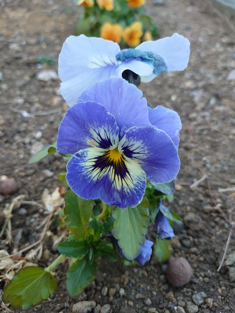4️⃣花壇で見つけたパンジー💜💙お顔に見えるタイプてすね😊可愛い💕