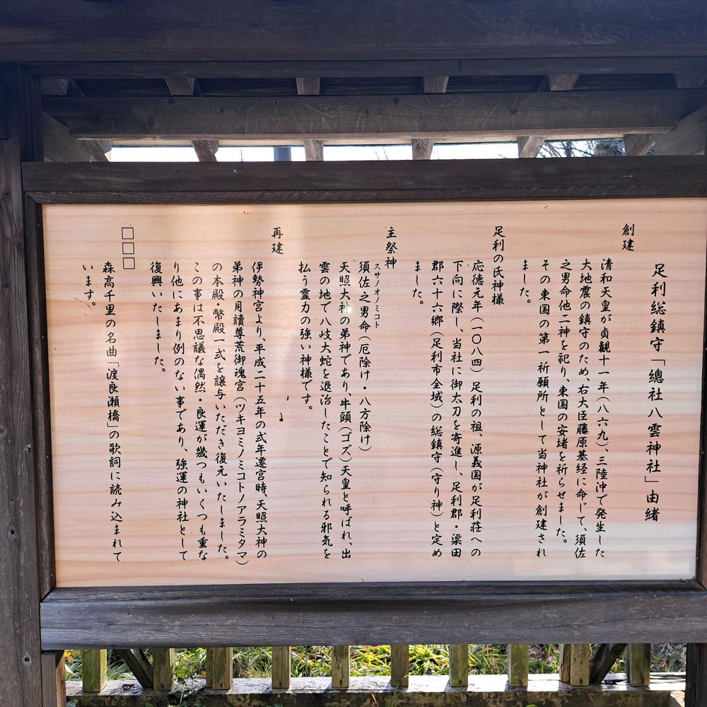 足利の八雲神社総社です 森高千里さんに歌われたのはたぶんここですね 小高くなってる本殿前から東を望むと足利の街並が綺麗に見えます かつて投稿した通町のほうの八雲神社は日赤病院に行くときの通り道となってますのでしってはいますが、こちらはそこを西に通りすぎて左に折れた場所にありますので近いといえば近いのですけれども 自分は母と二人で参りましたが、女性独りというかたも何人かおられました 南に足利公園や美術館、古墳群もあってできたらのんびりと散策したかったですな😃