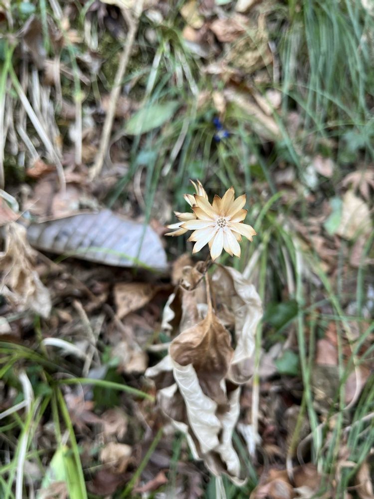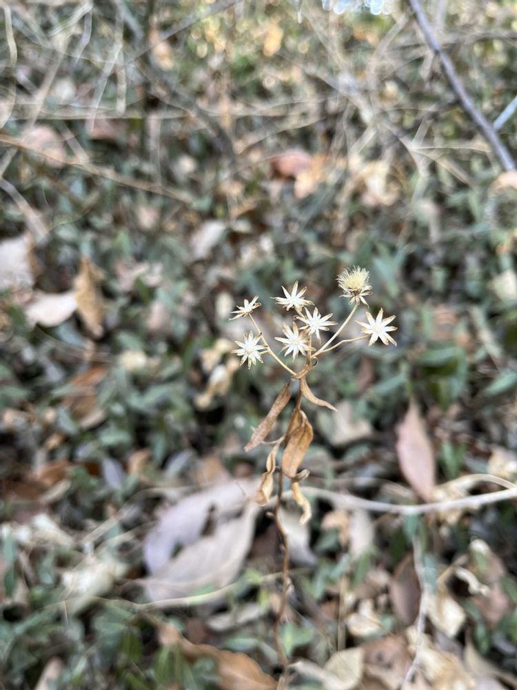 花後の様子を撮影するも、コウヤボウキ以外は分からず。「誰っ?」と思いながらも、星のような形の残った萼をセピア色のドライフラワーのようだなと愛でつつハイキング。